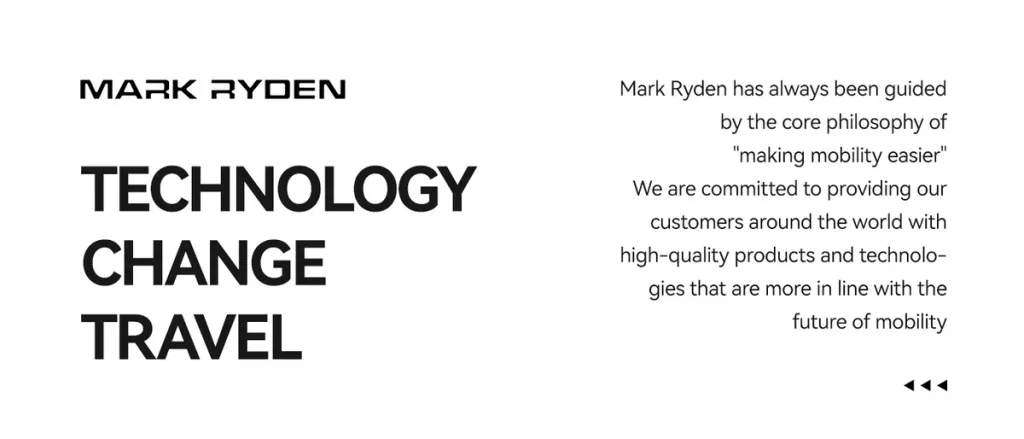 MarkRyden's slogan is "Making mobility easier" and we are committed to providing our customers around the world with high quality products and technologies that are more in line with the future of mobility.