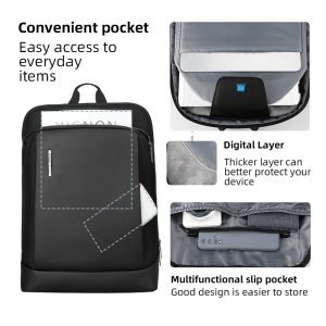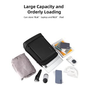The backpack features a large capacity with an orderly loading system, capable of holding a 15.6-inch laptop and a 10.5-inch iPad within its dedicated laptop layer. The thicker digital layer ensures that your devices are well-protected during transport. The bag also includes a convenient pocket for easy access to your everyday essentials, as well as a multifunctional slip pocket for organized storage.
