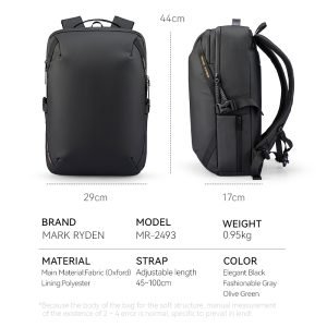Mark Ryden MR-2493 is the perfect combination of functionality and style for the modern commuter. Weighing just 0.95kg, this lightweight backpack is crafted from durable Oxford fabric with a polyester lining, ensuring long-lasting use and protection against the elements. With dimensions of 44 x 29 x 17 cm, it offers ample space for all your essentials without feeling bulky.