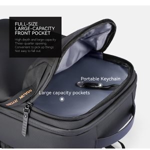 This backpack features a convenient keychain holder, allowing quick access to your keys or access cards. The shoulder strap slot enables contact sensing without the need to remove the bag, making it ideal for tech-savvy users. For safety during outdoor activities, it includes an emergency whistle and an adjustable, removable chest clasp.