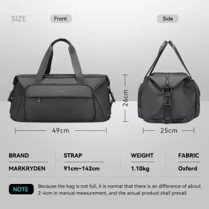 The Mark Ryden 2891 Travel & Gym Bag combines practicality with style, making it an excellent choice for both travel and gym use. Constructed from high-quality Oxford fabric, it measures 26 cm x 49 cm x 25 cm and weighs 1.1 kg, offering a spacious 32 liters of storage capacity.