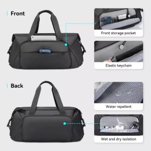 This versatile bag features a dedicated compartment for a 17.3″ laptop and a 9.7″ pad pocket, ensuring that your electronic devices are securely stored. The design includes a front storage pocket and an elastic keychain for easy access to smaller items. It also incorporates a wet and dry isolation feature to keep your belongings organized and protected.