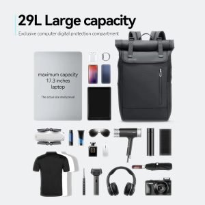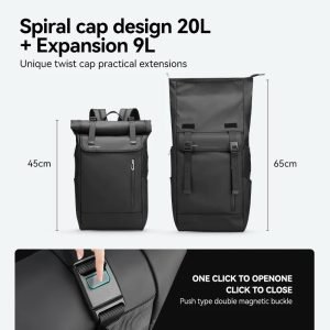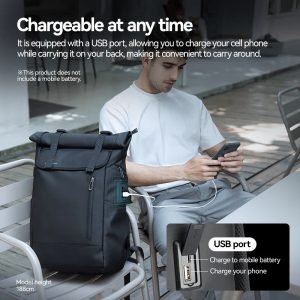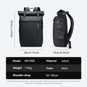 The backpack’s unique spiral roll design allows for practical expansion, while the USB port adds convenience by enabling on-the-go phone charging. The dedicated laptop compartment accommodates up to a 17.3-inch laptop, ensuring your tech is well-protected. Additional features include magnetic buckles for easy access, water-repellent Oxford fabric for protection against the elements, and multiple pockets for organized storage. The side access design further enhances usability, making the Mark Ryden Model 2908 a versatile and reliable choice for modern travel and business needs.