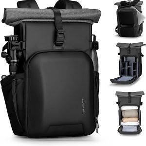 Additional features include side pockets for a 1L kettle or tripod, an anti-theft pocket for valuables and a 7.9-inch tablet, and a separate 15.6-inch laptop compartment. The backpack’s water-repellent Oxford fabric protects against rain, while the removable divider allows you to repurpose the camera compartment for clothing or other travel essentials. With its combination of practical features and protective design, the Mark Ryden Model 2913 is an ideal choice for both business and photography trips.