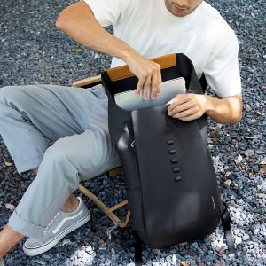 Designed for versatility, the backpack has a five-speed adjustable capacity, allowing for different storage needs. It also includes a trolley case hanging strap for convenience during travel. The water-repellent fabric and anti-scratch film ensure protection against the elements and wear. Comfort features like adjustable shoulder straps and a honeycomb breathable back pad enhance user experience, while YKK zippers and a portable handle add to its practical design.