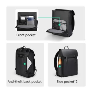 Designed to hold a 15.6-inch laptop securely in a dedicated compartment, the backpack features a front pocket for easy access, an anti-theft back pocket for valuables, and two side pockets for water bottles or other essentials. The interior is thoughtfully organized with a specialized computer compartment (28 x 40 cm) and additional storage layers to keep items well-arranged.