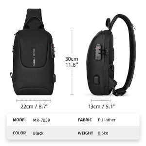 The Mark Ryden Model 7039 Anti-Theft Crossbody Bag is designed for those who value both security and style. Weighing only 0.6 kg and measuring 30 x 22 x 13 cm, this bag is made from high-quality PU leather with a waterproof coating, ensuring your belongings stay dry and protected.