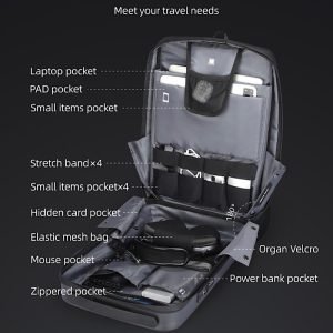 The quality handle and luggage trolley strap add to the backpack’s convenience, while the EVA hot pressing integrated molding technology enhances durability and protection against scratches, stains, and mildew. Designed with craftsmanship and future-forward technology, the Mark Ryden 7612 blends innovative materials with thoughtful design, catering to your travel needs and setting a new standard for mobility and style.