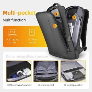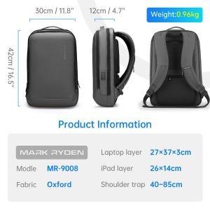 The Mark Ryden Model 9008 Backpack combines style and functionality, making it an ideal choice for modern travelers and professionals. Made from durable, water-repellent Oxford fabric, it offers lightweight design and ample storage, including a dedicated 15.6″OR 17,3 laptop pocket, 11″ iPad pocket, and waterproof compartments. YKK zippers ensure durability, while the anti-theft pocket and dual charging port add convenience and security. With systematic storage solutions, breathable materials, and a luggage strap for easy travel, this backpack is designed to enhance your journey.