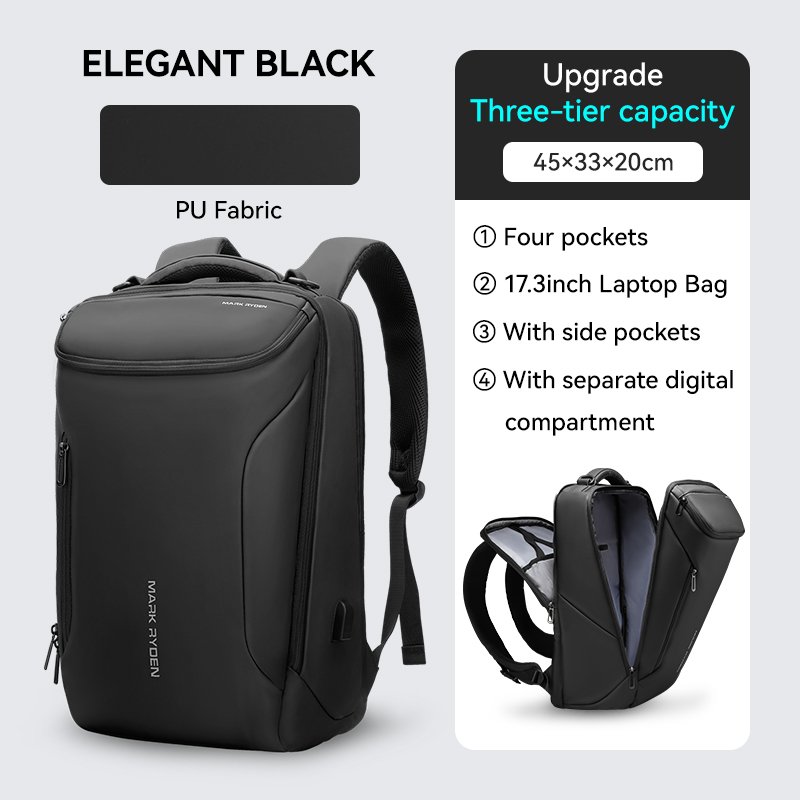 The Mark Ryden 9031 backpack is designed for the modern commuter, blending functionality with sleek style. Weighing between 1.1kg and 1.3kg, this backpack is constructed from durable PU and Oxford materials, offering a lightweight yet robust carrying solution. Measuring 45*33*20cm, it provides ample space without being bulky.