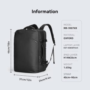 The Mark Ryden 9907 Expandable Backpack is a versatile and durable choice for daily use and travel. Made from water-resistant Oxford fabric, it weighs just 1.32 kg and measures 46 x 31 x 22 cm. The backpack features a large, expandable compartment with a 180° opening, making it easy to access your belongings. It includes dedicated pockets for a 17.3″ laptop, 11″ iPad, and other essentials. With a built-in USB charging port, breathable back cushion, and a secure luggage strap, this backpack is designed for both comfort and functionality.