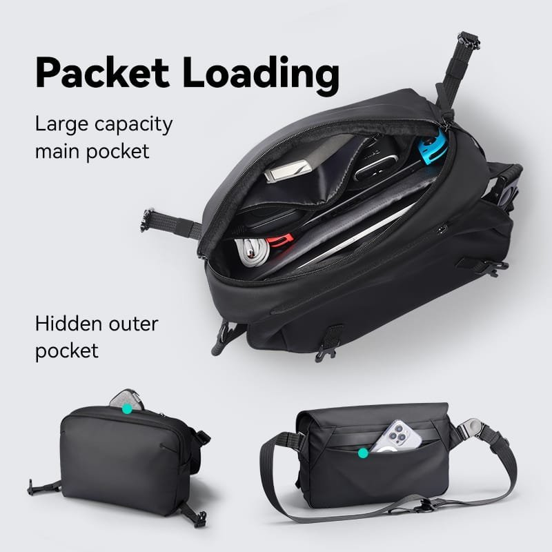 The minimalist profile is enhanced with YKK zippers for smooth access, and a flip-top snap-in lid provides added protection and aesthetic. The adjustable strap (90–123 cm) features a unique quick-pull elastic tensioner, allowing you to fine-tune the fit or remove it entirely to convert the bag into a compact travel organizer.